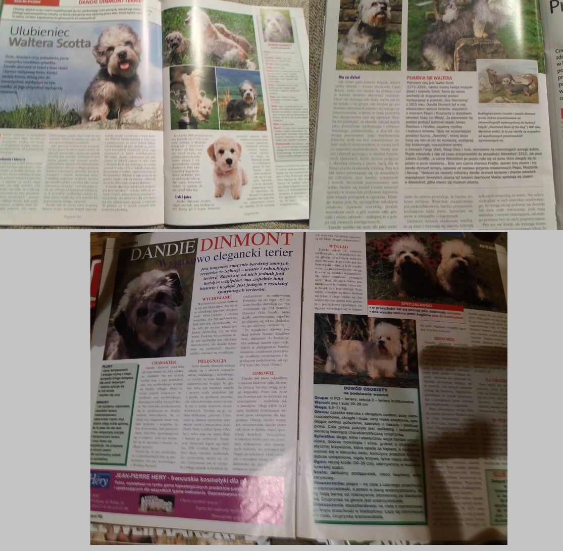 Dzięki naszym staraniom ukazało się w polskiej prasie kilka artykułów i krótkich wzmianek o tej rasie. Pierwszy z nich, gdzie bochaterami są Odetka i Brutus znajdą Państwo pod linkiem:<<< poranny.pl.dandie-dinmont-terrier . Poniżej migawka z prasy kynologocznej.