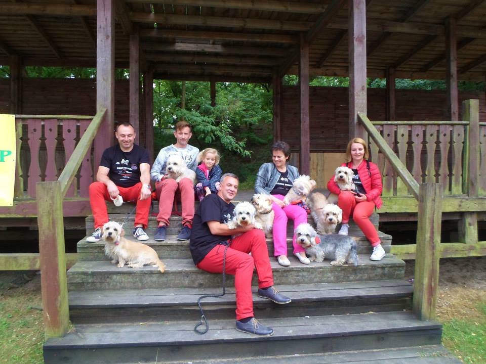 Tu muszę się pochwalić, że nasza praca związana z promocją rasy została zauważona również za granicą i jesteśmy wraz z psami zapraszani między innymi na zloty rasy odbywające się w Czechach, gdzie dandusie są dość popularne ( poniżej fotka z takiego spotkania ).