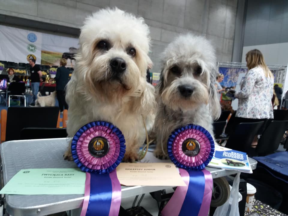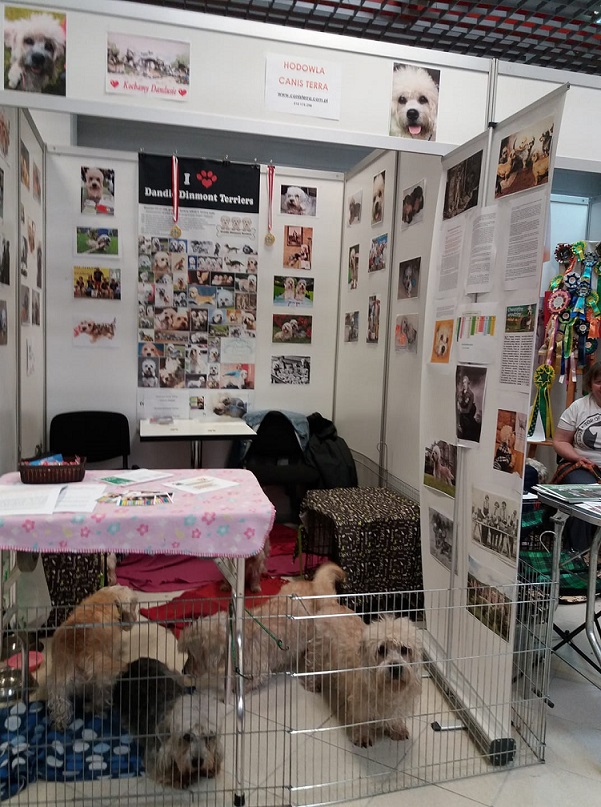 Na niektórych wystawach, członkowie ZKwP mogą prezentować swoje psy i hodowane rasy. Zawsze gdy jest taka możliwość, wraz z przyjaciółmi pokazujemy nasze dandusie, opowiadamy o nich, o niezwykłej historii powstania rasy. Każdy odwiedzajcy nasz zakłątek, może nie tylko porozmawiać o dandie, ale również chwilę spędzić z naszymi dandusiami i poznać te sympatyne psiaki osobiscie. Poniżej nasza hodowla prezentowana przy okazji Międzynarodowej Wystawy Psów w Warszawie ( hale Ptak w Nadarzynie ) rok 2018. Dziś z zadowoleniem zauważamy, że psiaki są już rozpoznawalne i zamiast pytania "Co to za dziwny pies?..", często będąc na spacerach słyszymy "O! patrz to Dandie.. " ![]()