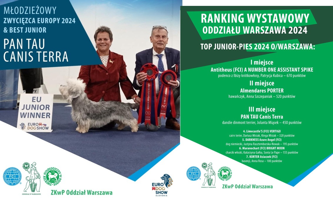 Rok 2025 rozpoczął się dla nas bardzo szczęśliwie nasz kochany Pulpet czyli rodowodowo PAN TAU Canis Terra został: TOP 3 Junior-Pies ZKwP Oddział Warszawa 2024!